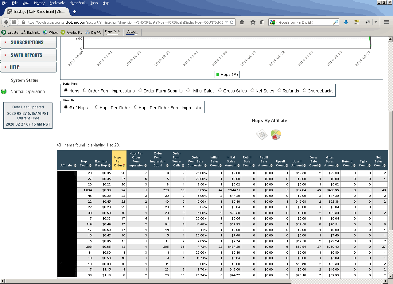 The screenshot below will give you a glimpse of the high conversion rate of Knocked Knees No More. Note that it was taken directly from our clickbank vendor's account. Given that you get 75% of each sale as the affiliate, your share of profit is 3 times as much as those shown in the screenshot.